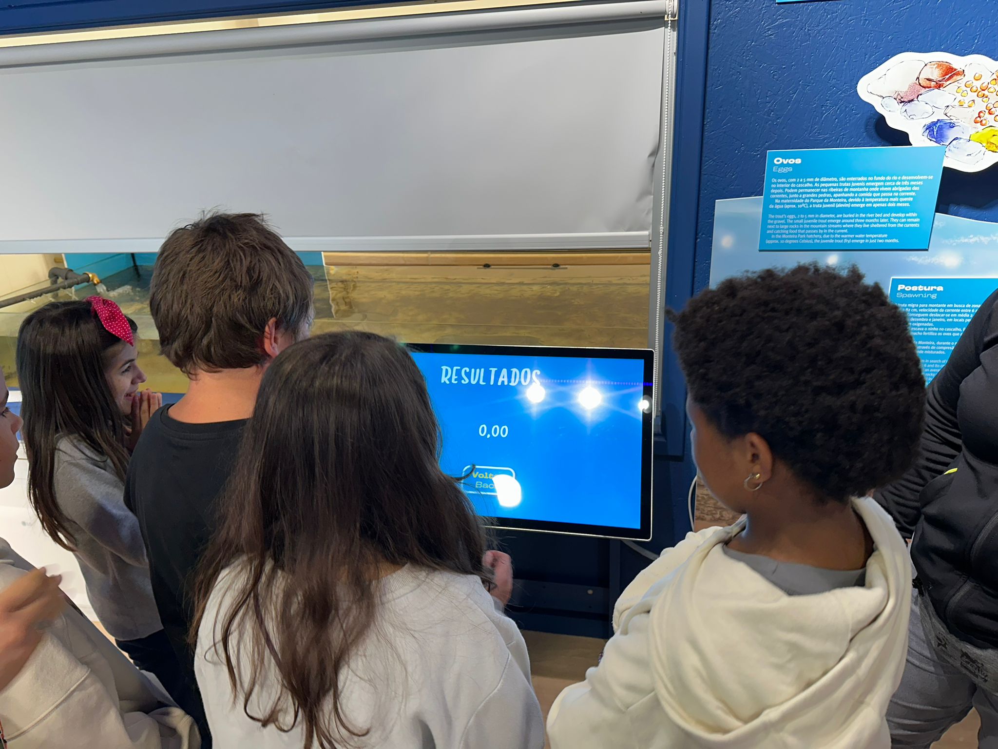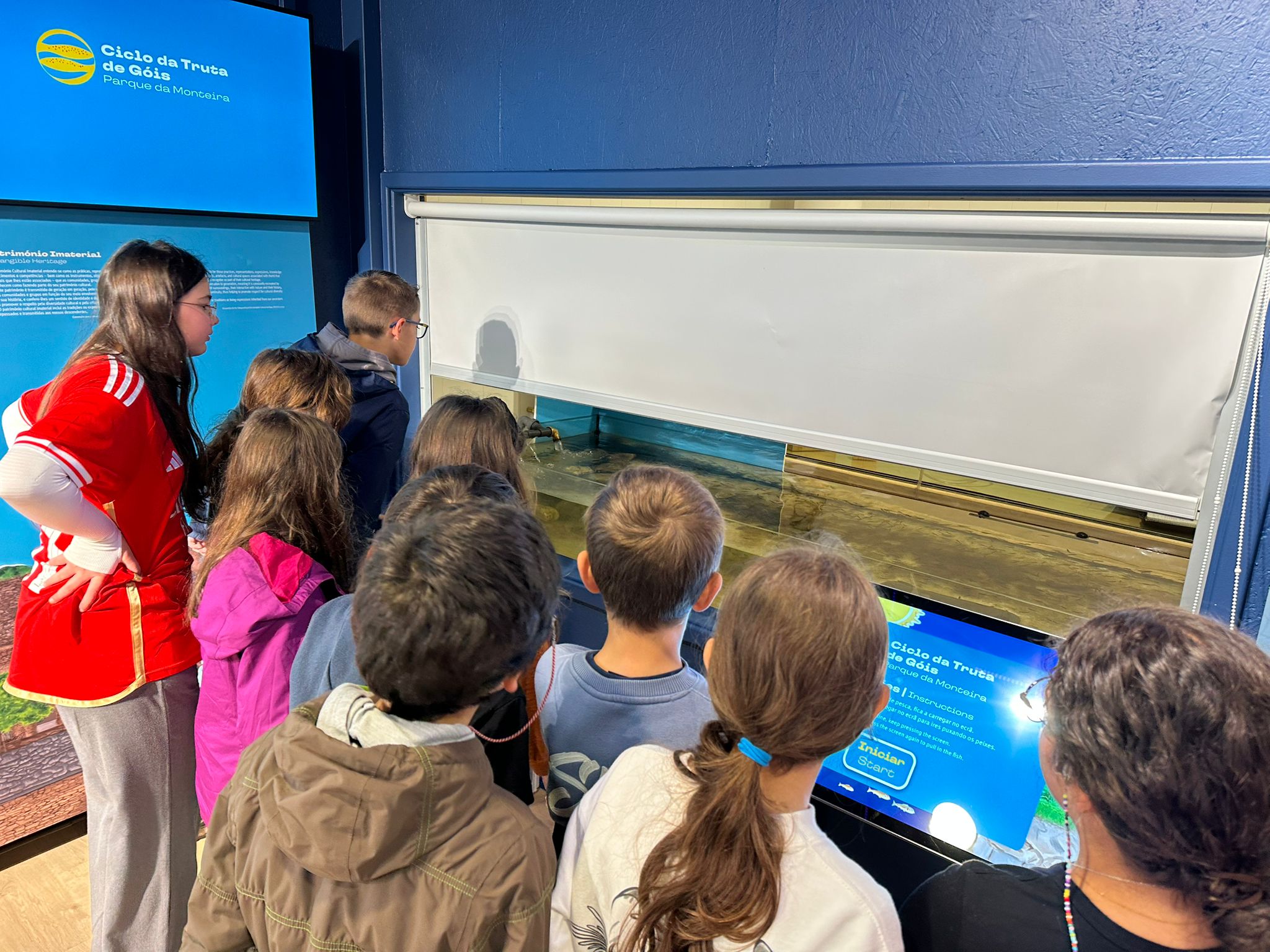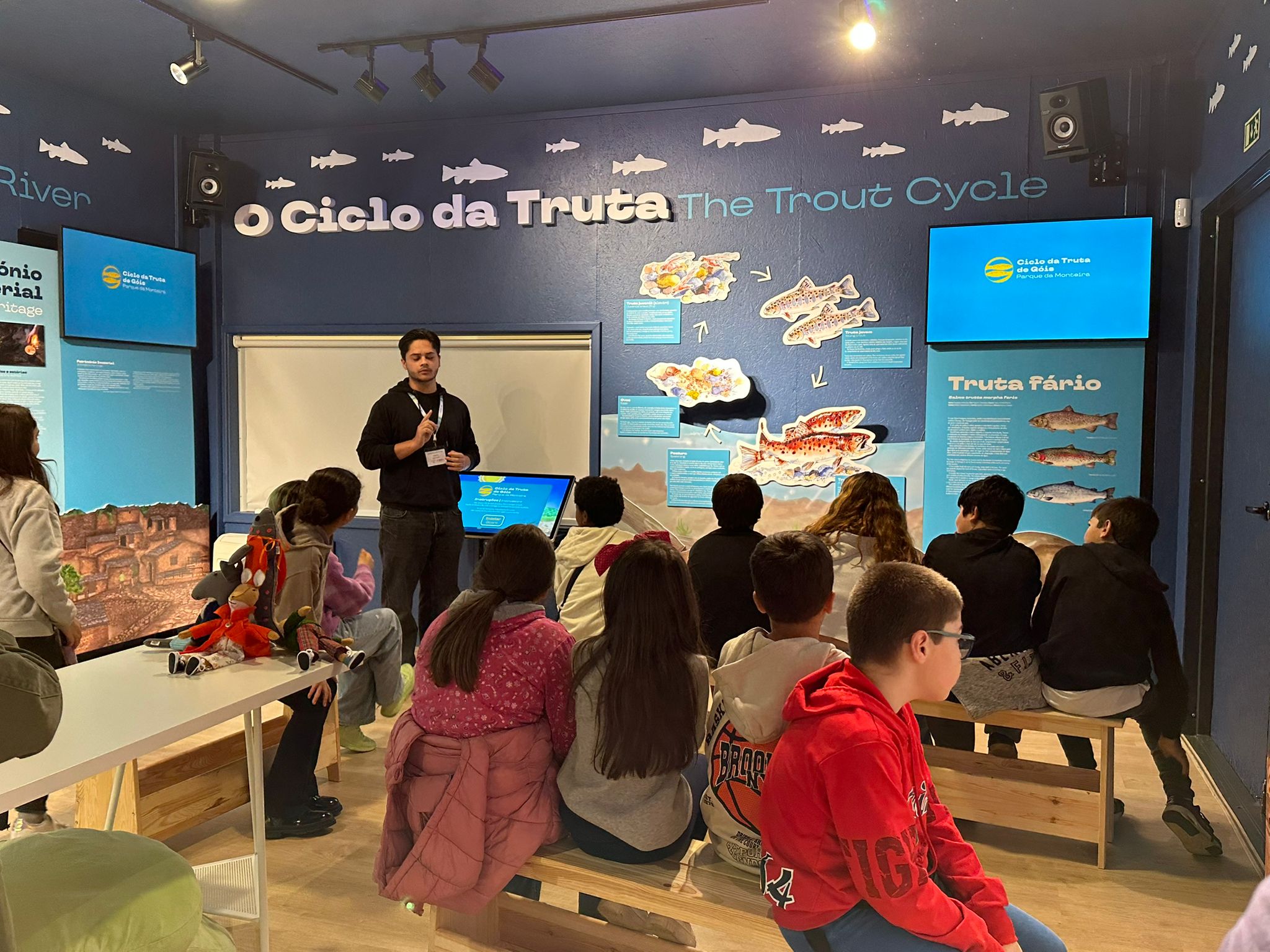 O “𝐂𝐢𝐜𝐥𝐨 𝐝𝐚 𝐓𝐫𝐮𝐭𝐚 𝐝𝐞 𝐆ó𝐢𝐬 – 𝐏𝐚𝐫𝐪𝐮𝐞 𝐝𝐚 𝐌𝐨𝐧𝐭𝐞𝐢𝐫𝐚” acolheu, esta manhã, 12 crianças do 5ºA e 11 crianças do 5ºB do Agrupamento de Escolas de Góis, onde tiveram oportunidade de conhecer o Ciclo da Água, o Vale do Ceira e o Ciclo da Truta, através dos vídeos disponíveis neste espaço, experimentar os jogos e os óculos virtuais, e ainda ver as trutas fário nos tanques exteriores e ver as trutas juvenis (alevim) na maternidade.