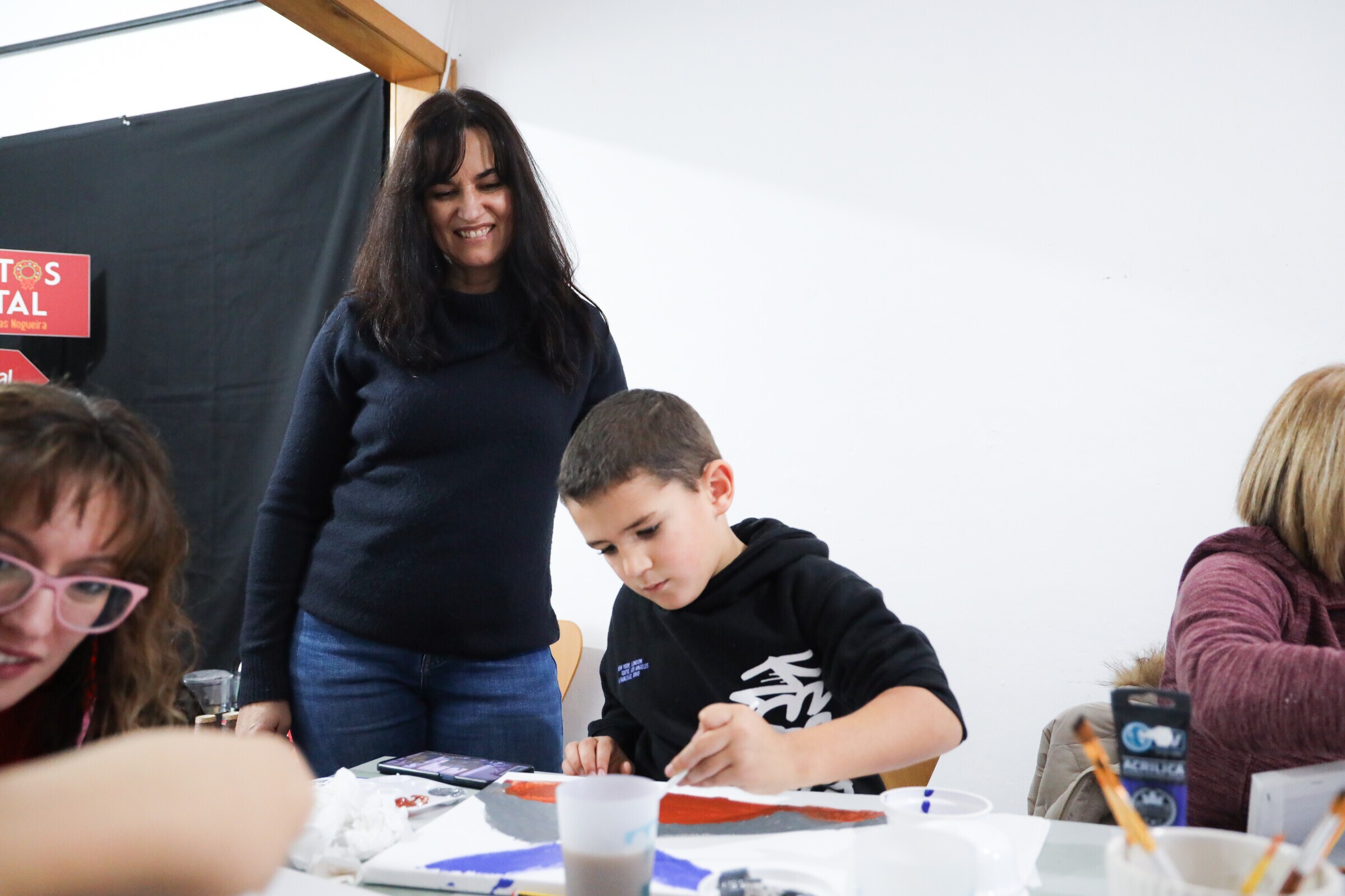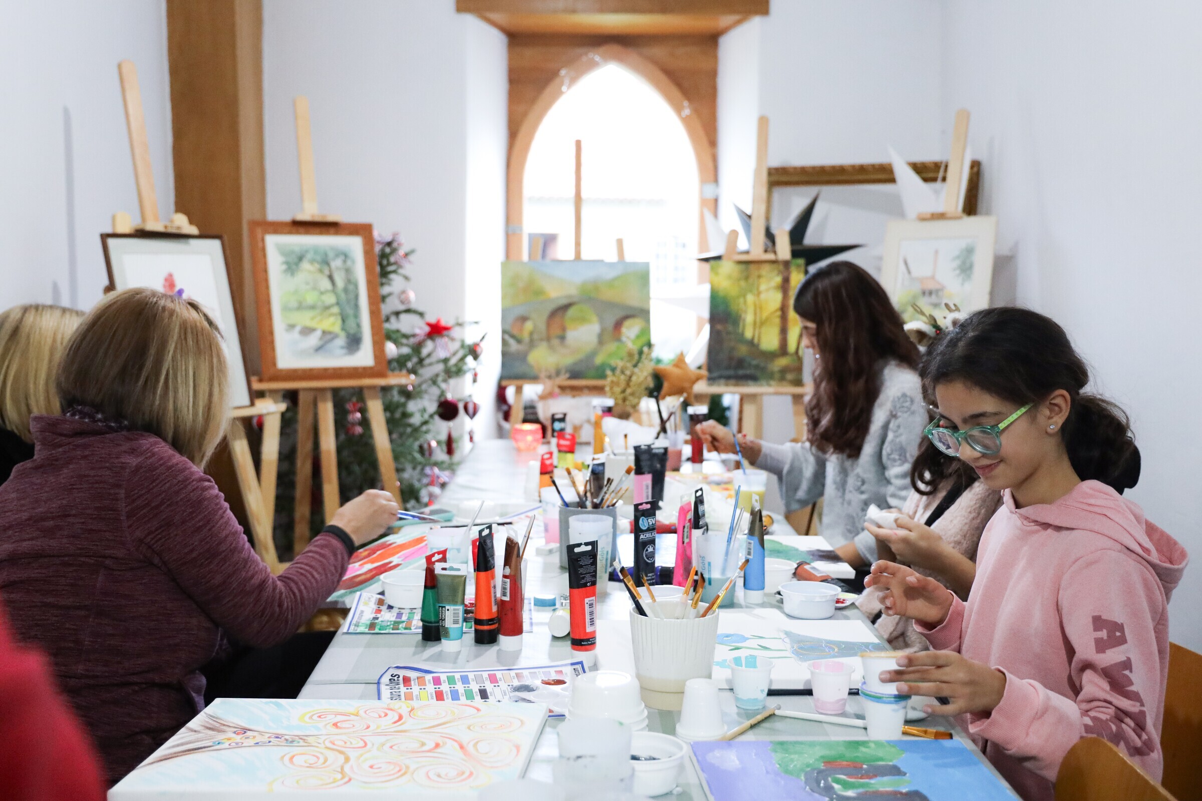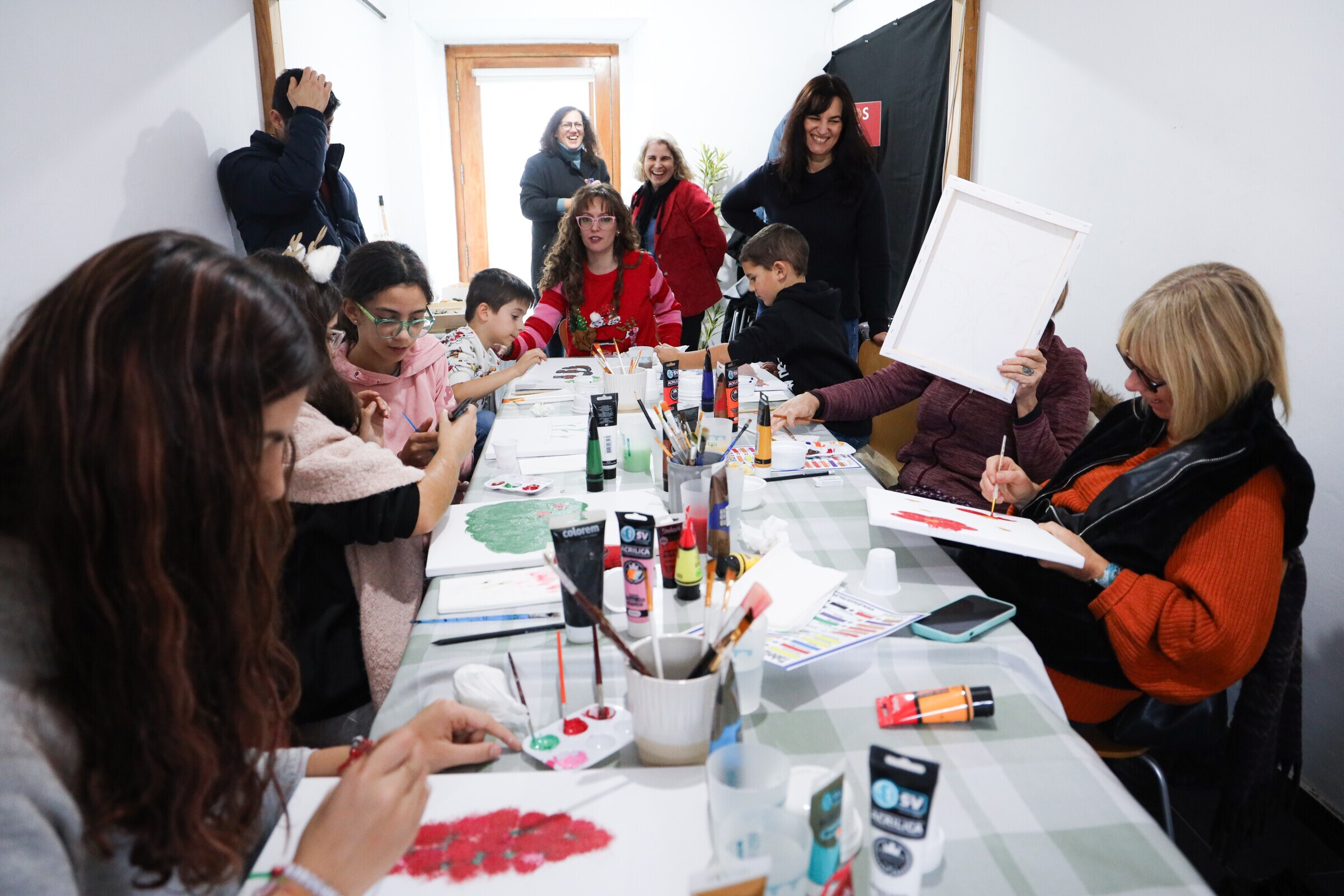 A iniciativa reuniu participantes de diferentes idades, num ambiente de partilha e criatividade, desafiando-os a criar uma pintura em tela inspirada nos quadros de Alice Sande, expostos no local.