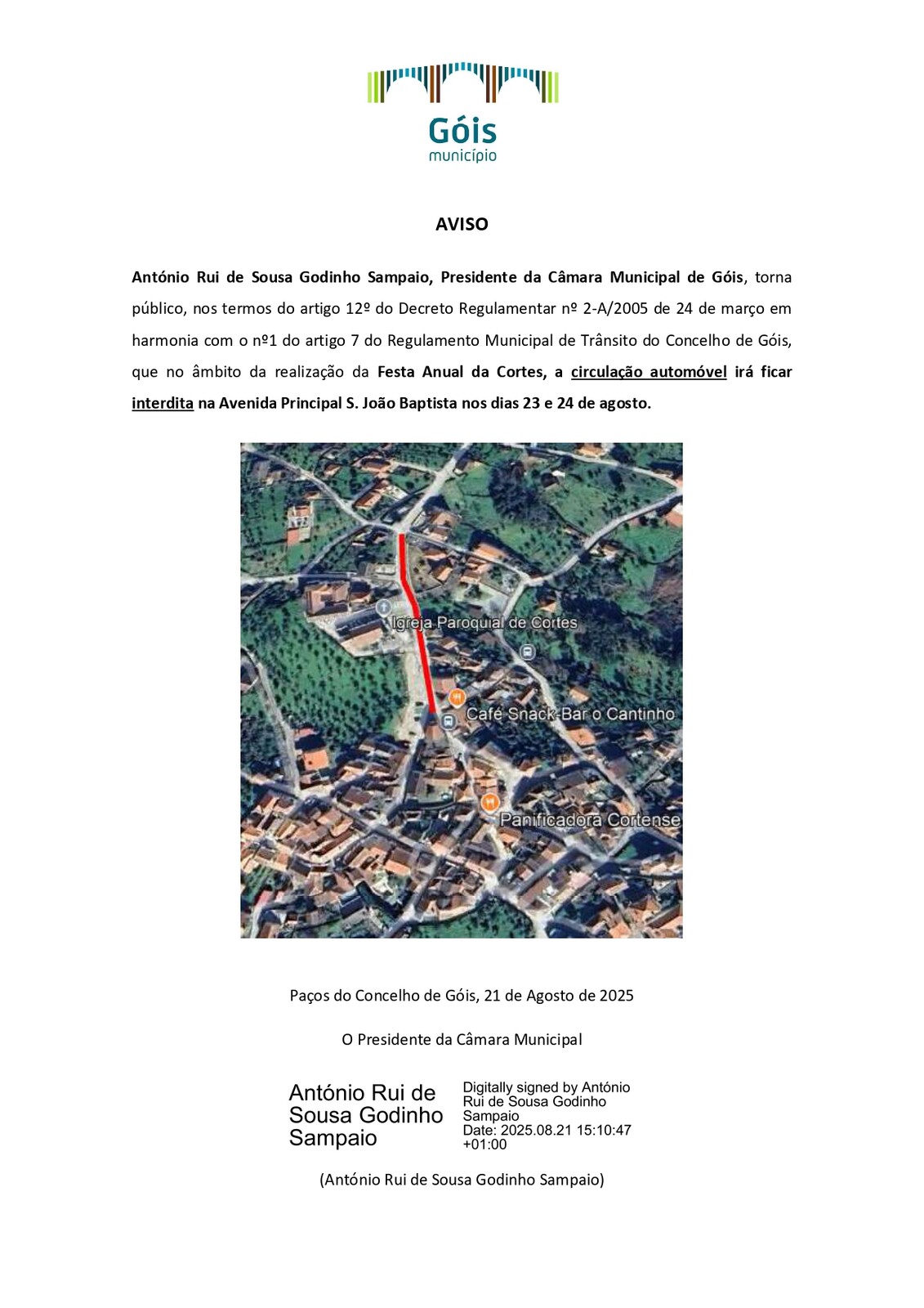 No âmbito da realização da 𝐅𝐞𝐬𝐭𝐚 𝐀𝐧𝐮𝐚𝐥 𝐝𝐞 𝐂𝐨𝐫𝐭𝐞𝐬, a circulação automóvel irá ficar interdita na 𝐀𝐯𝐞𝐧𝐢𝐝𝐚 𝐏𝐫𝐢𝐧𝐜𝐢𝐩𝐚𝐥 𝐒. 𝐉𝐨𝐚̃𝐨 𝐁𝐚𝐩𝐭𝐢𝐬𝐭𝐚 nos dias 𝟐𝟑 𝐞 𝟐𝟒 𝐝𝐞 𝐚𝐠𝐨𝐬𝐭𝐨.
