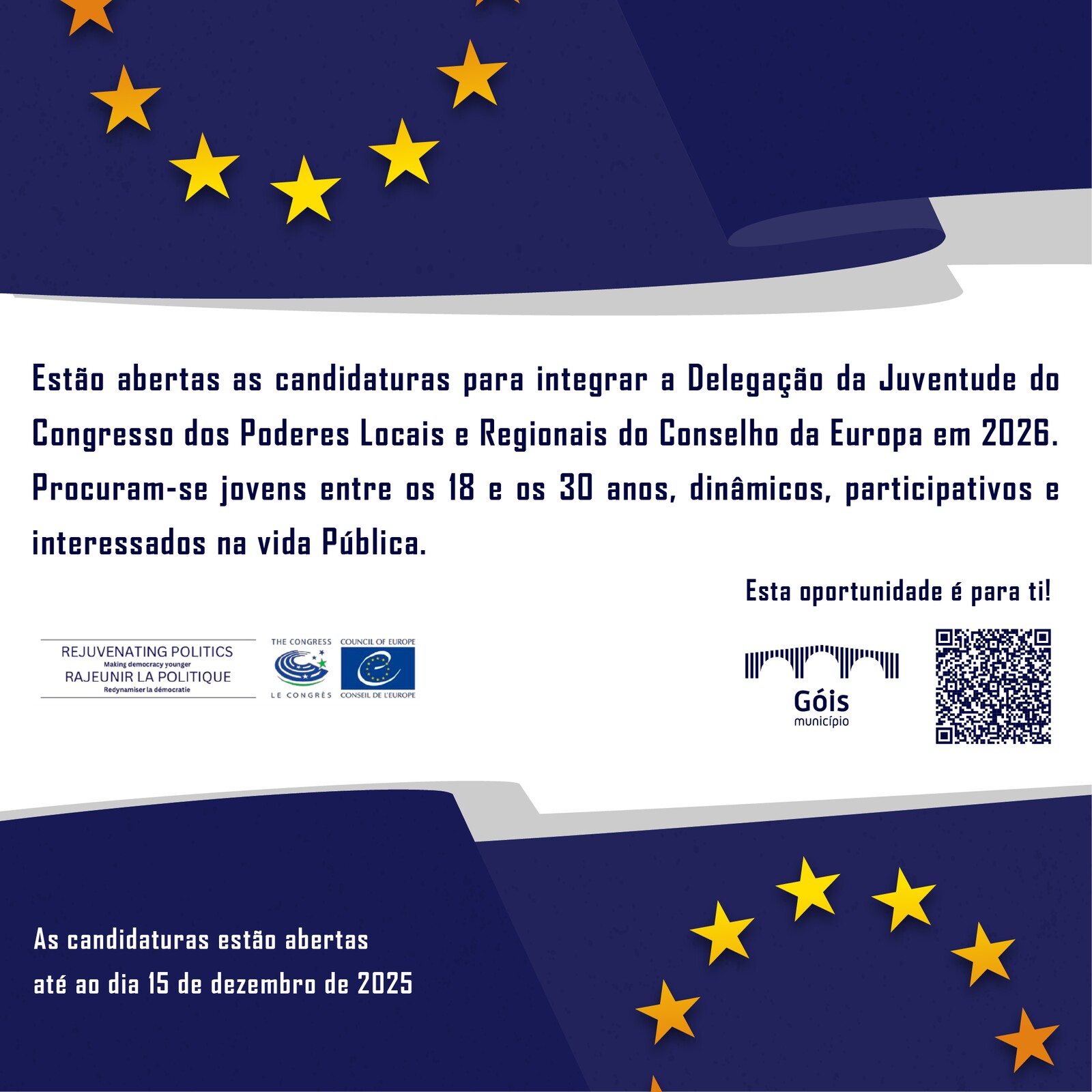 O Município de Góis partilha a abertura de candidaturas para a Delegação dos Poderes Locais e Regionais do Conselho da Europa em 2026.