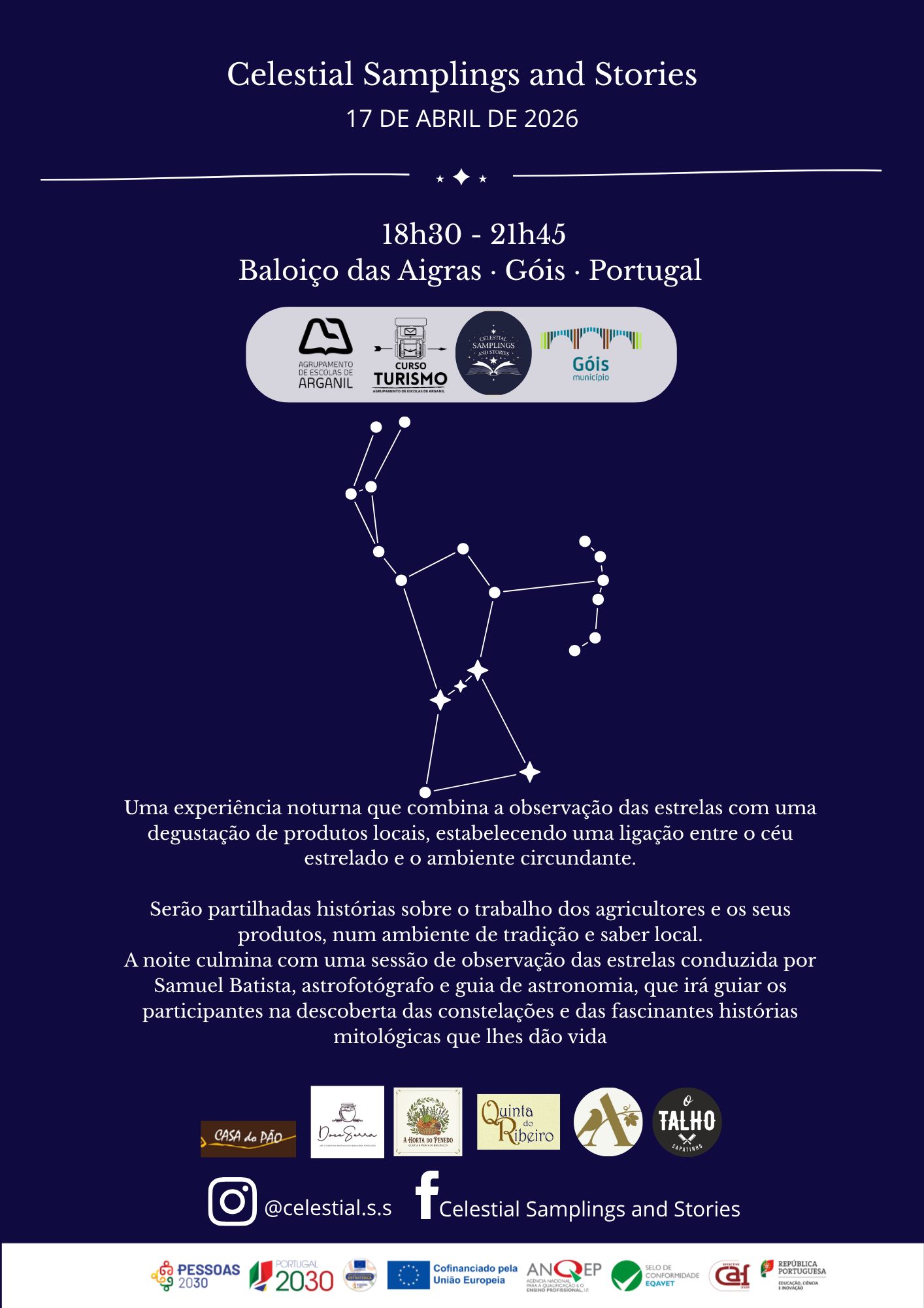 Esta experiência noturna propõe uma envolvente combinação entre a observação do céu estrelado e a degustação de produtos locais, promovendo uma ligação única entre a natureza, a gastronomia e o património rural do concelho. Ao longo da atividade, serão partilhadas histórias sobre o trabalho dos agricultores e os produtos que caracterizam o território, num ambiente marcado pela tradição e pelo saber local.