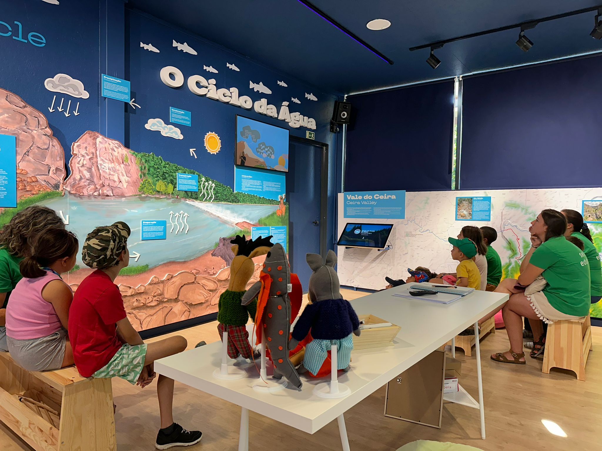 Durante a manhã, os pequenos participantes tiveram oportunidade de assistir aos vídeos disponíveis sobre os principais temas deste espaço: o Ciclo da Água, o Vale do Ceira, o Homem e o Rio e o Ciclo da Truta, experimentar os jogos e os óculos virtuais, assistir às trutas fário nos tanques exteriores (juvenil e adulta) e participar no jogo da pesca que se encontra na zona exterior deste equipamento municipal.