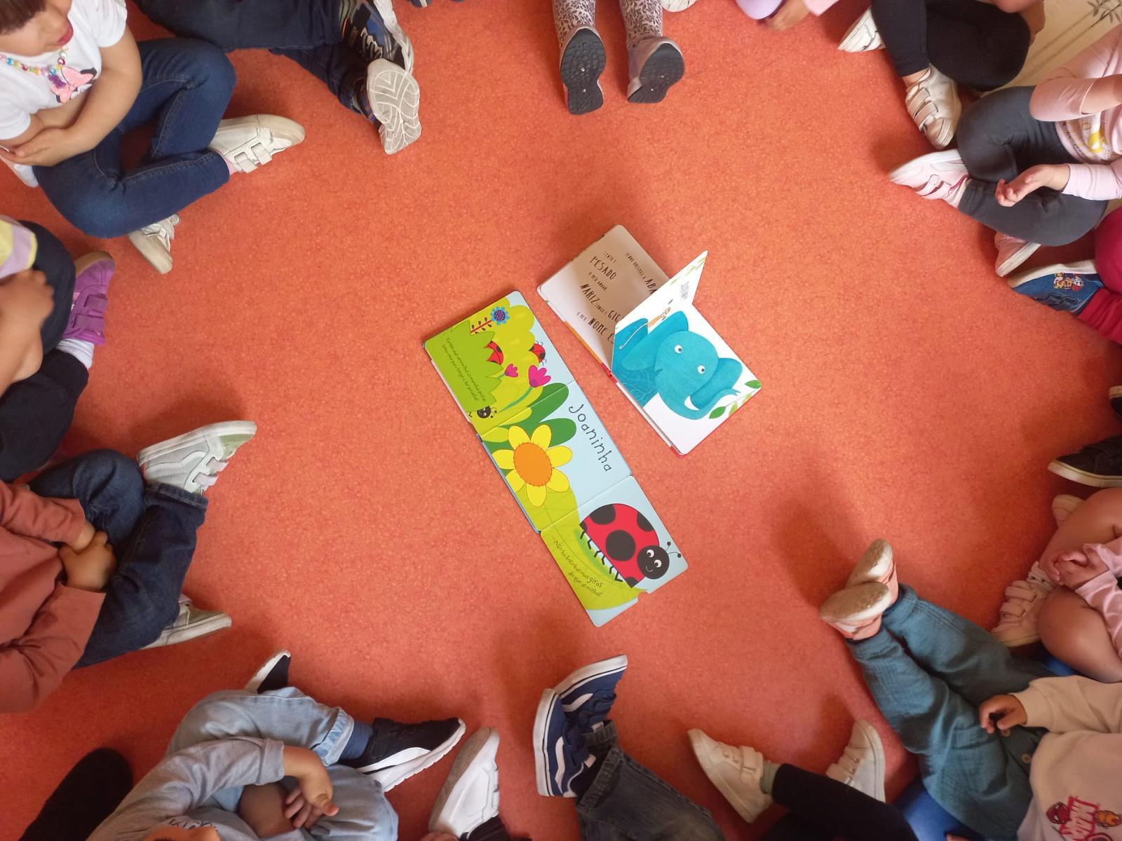 A atividade envolveu 17 crianças da sala dos dois anos, proporcionandoum momento de descoberta, imaginação e proximidade com os livros, através da leitura das obras "Quem está na floresta?" e "De quem são as bolas?".