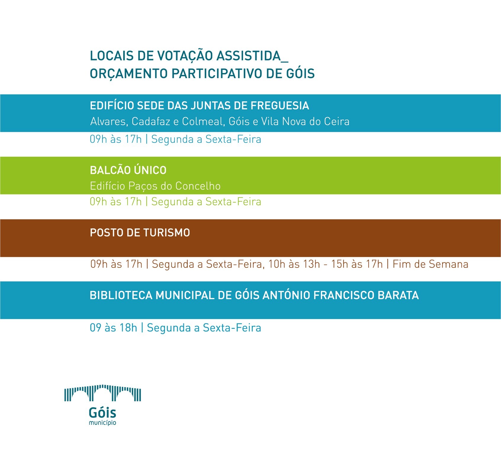 𝐀 𝐬𝐞𝐱𝐭𝐚 𝐞𝐝𝐢𝐜̧𝐚̃𝐨 𝐝𝐨 𝐎𝐫𝐜̧𝐚𝐦𝐞𝐧𝐭𝐨 𝐏𝐚𝐫𝐭𝐢𝐜𝐢𝐩𝐚𝐭𝐢𝐯𝐨 𝐝𝐞 𝐆𝐨́𝐢𝐬 𝐞𝐧𝐭𝐫𝐚 𝐞𝐦 𝐟𝐚𝐬𝐞 𝐝𝐞 𝐯𝐨𝐭𝐚𝐜̧𝐚̃𝐨 𝐡𝐨𝐣𝐞 𝐚𝐭𝐞́ 𝐚𝐨 𝐝𝐢𝐚 𝟑𝟎 𝐝𝐞 𝐬𝐞𝐭𝐞𝐦𝐛𝐫𝐨. Durante um mês, os/as naturais ou residentes ou trabalhadores/as ou estudantes do Concelho de Góis a partir dos 16 anos até aos 35 anos devem votar no projeto no Orçamento Participativo Jovem e os/as naturais ou residentes ou trabalhadores/as ou estudantes do Concelho de Góis a partir dos 35 anos devem votar no Orçamento Participativo Geral, o projeto de eleição e assim escolher o vencedor nesta edição.