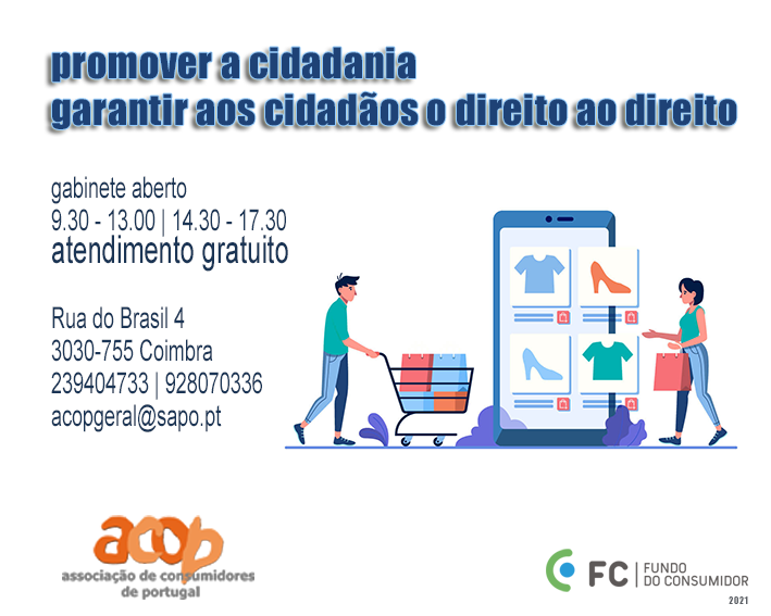 📌 O consumidor que pretenda ser esclarecido, sobre os seus direitos ou resolução de qualquer situação de conflito de consumo, será atendido, gratuitamente, nas instalações da ACOP, em Coimbra.
