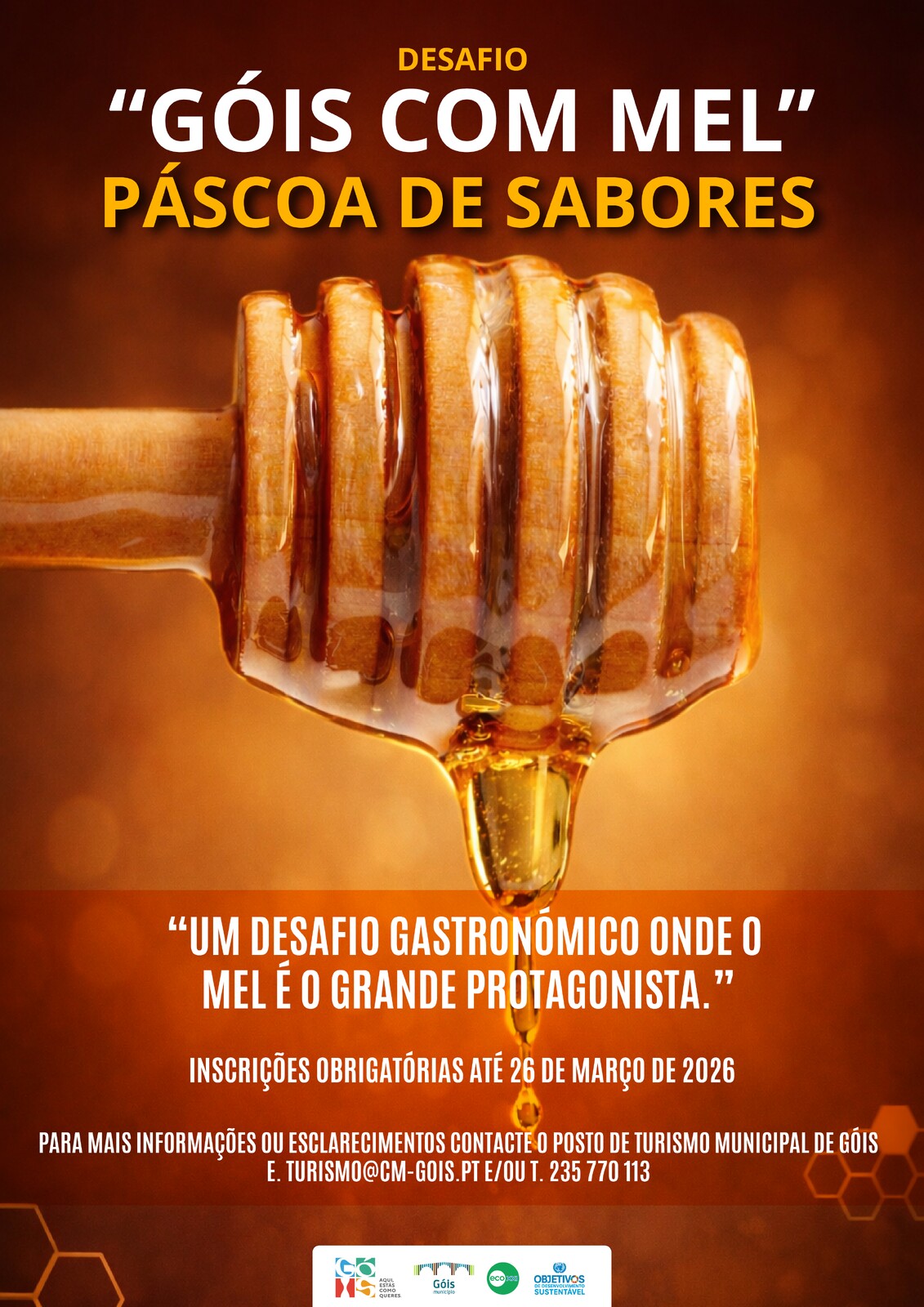 O Município de Góis promove o Desafio “Góis com Mel”, no âmbito da iniciativa “Páscoa de Sabores”, com o objetivo de promover as tradições e a diversidade da gastronomia local, dinamizar os espaços de restauração do concelho e valorizar o mel de urze enquanto produto endógeno identitário.
