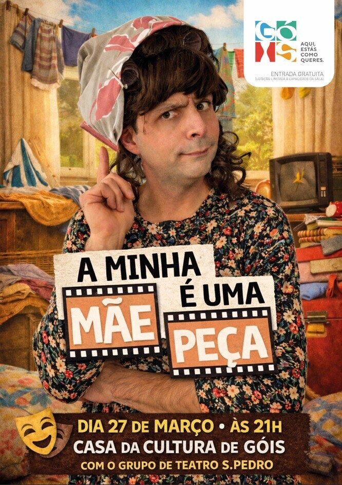 No âmbito do Dia Mundial do Teatro, o Município de Góis irá acolher a peça de teatro "A Minha Mãe é uma Peça", de Paulo Gutavo, promovida pelo Grupo de Teatro São Pedro.
