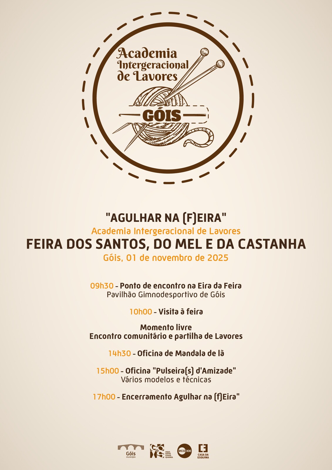 No âmbito da 𝐅𝐞𝐢𝐫𝐚 𝐝𝐨𝐬 𝐒𝐚𝐧𝐭𝐨𝐬, 𝐝𝐨 𝐌𝐞𝐥 𝐞 𝐝𝐚 𝐂𝐚𝐬𝐭𝐚𝐧𝐡𝐚, o Município de Góis está a promover a 𝐀𝐜𝐚𝐝𝐞𝐦𝐢𝐚 𝐈𝐧𝐭𝐞𝐫𝐠𝐞𝐫𝐚𝐜𝐢𝐨𝐧𝐚𝐥 𝐝𝐞 𝐋𝐚𝐯𝐨𝐫𝐞𝐬 "𝐀𝐠𝐮𝐥𝐡𝐚𝐫 𝐧𝐚 (𝐅)𝐞𝐢𝐫𝐚", que irá decorrer no dia 𝟏 𝐝𝐞 𝐧𝐨𝐯𝐞𝐦𝐛𝐫𝐨, no 𝐏𝐚𝐯𝐢𝐥𝐡𝐚̃𝐨 𝐆𝐢𝐦𝐧𝐨𝐝𝐞𝐬𝐩𝐨𝐫𝐭𝐢𝐯𝐨 𝐝𝐞 𝐆𝐨́𝐢𝐬, a qual pretende promover os nossos lavores, saberes e histórias, através de uma rede de conhecimentos intergeracional.