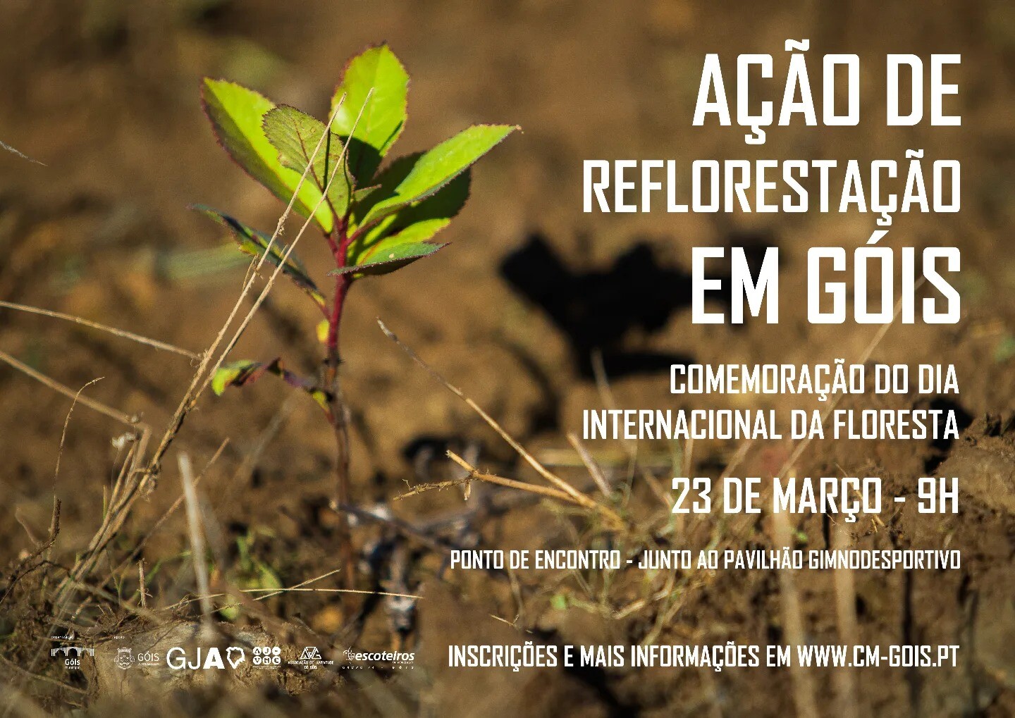 O Município de Góis, em colaboração com a Junta de Freguesia de Góis, o Grupo de Jovens Alvarenses, a Associação de Juventude de Góis, a Associação de Juventude de Vila Nova do Ceira e o Grupo de Escoteiros 74 de Góis vão realizar, no próximo dia 23 de março, uma ação de reflorestação, inserida na comemoração do Dia Mundial da Floresta.