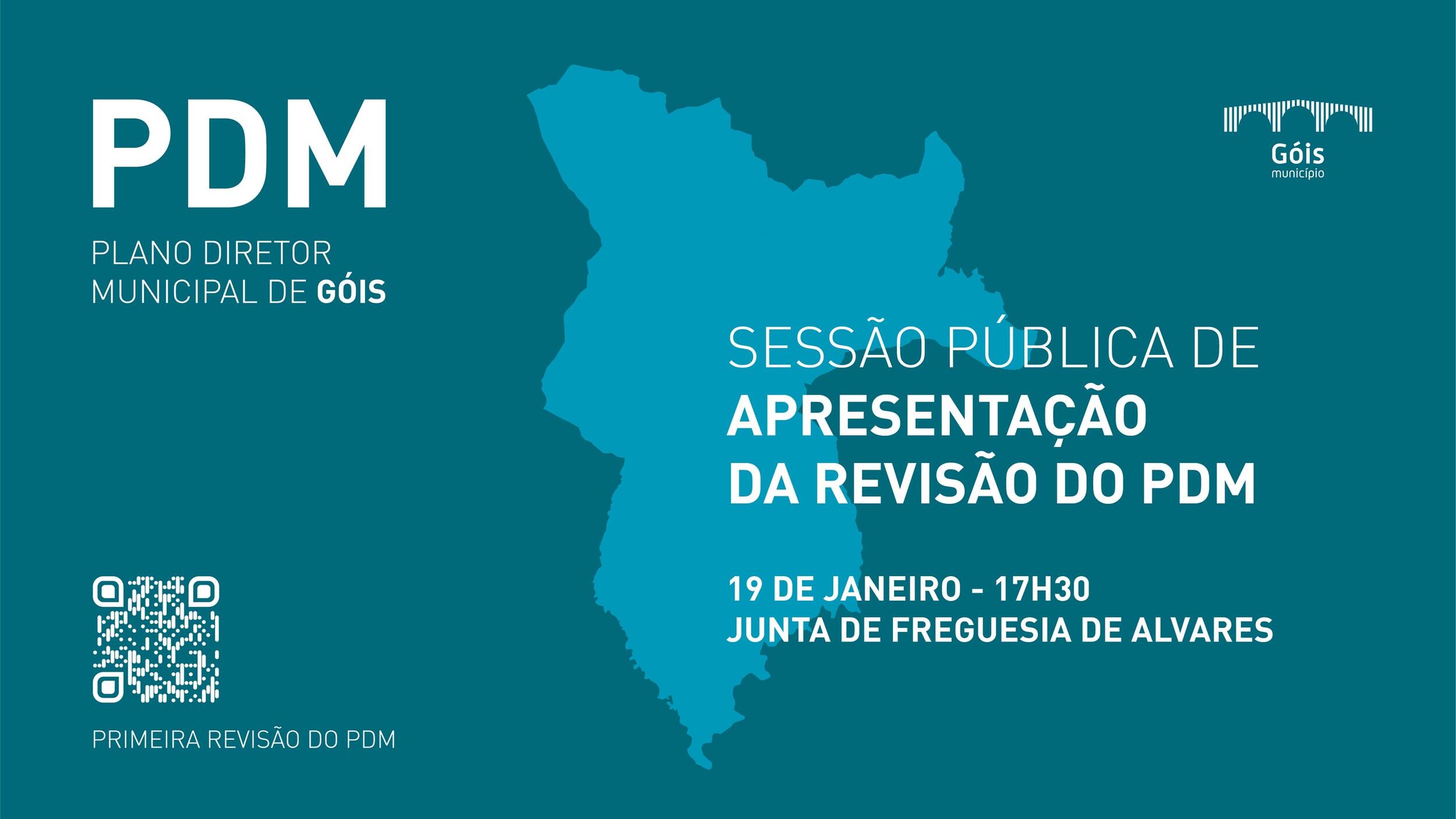O PDM é um plano que estabelece a estratégia de desenvolvimento e as regras para utilização, ocupação e transformação do uso do solo em todo o Concelho. Neste sentido, o Município de Góis convida toda a população a participar na Sessão Pública de Apresentação e Discussão da Revisão do PDM, a decorrer no dia 19 de janeiro (sexta-feira), às 17h30, na sede da Junta de Freguesia de Alvares.