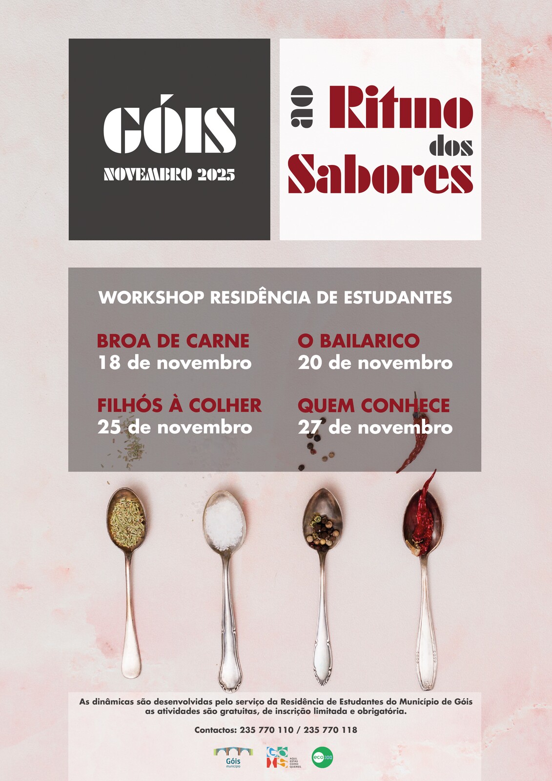 As atividades são gratuitas, de inscrição limitada e obrigatória - Residência de Estudantes de Góis - T. 235 770 110 / 235 770 118.