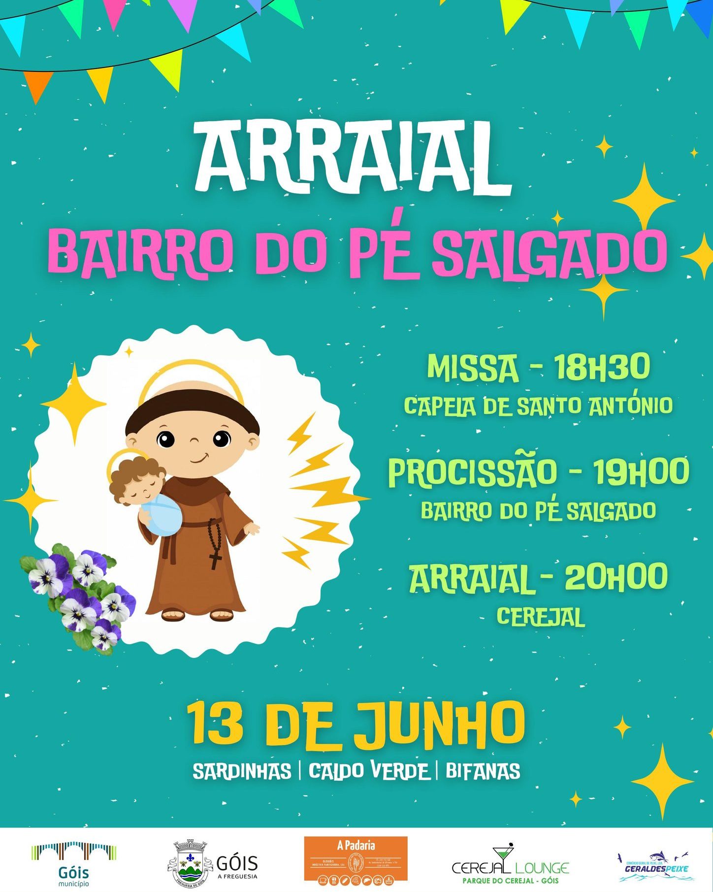 No dia 13 de junho, a partir das 18h30, não perca o Arraial Popular do Bairro do Pé Salgado, no Parque de Merendas do Cerejal, em honra de St. António.