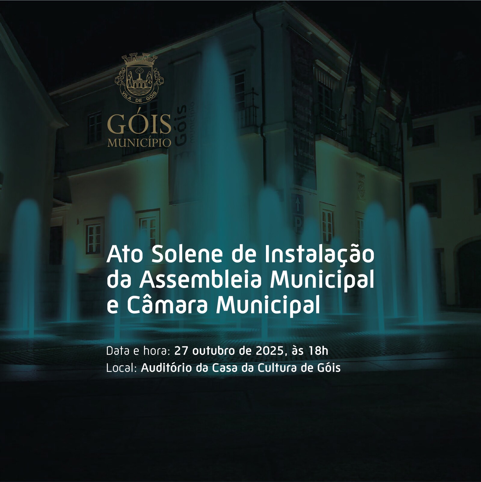 O Município de Góis convida toda a população a participar no Ato Solene de Instalação da Assembleia Municipal e Câmara Municipal, que assinala o início do novo mandato autárquico 2025-2029.