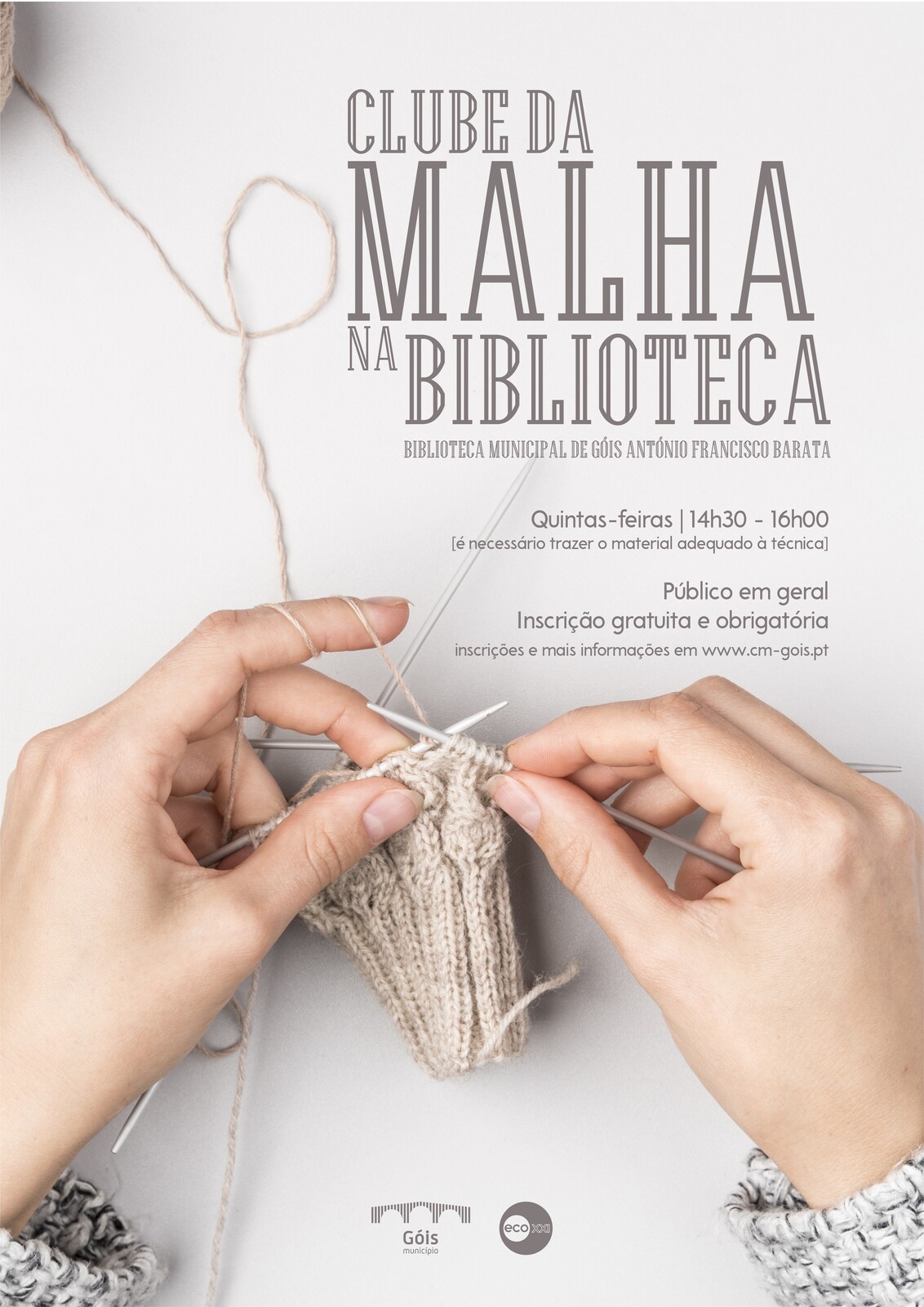 O Município de Góis convida a população Goiense, de miúdos a graúdos, a participar na iniciativa “Clube da Malha na Biblioteca”, no dia 14 de março, das 14h30 às 16h00, na Biblioteca Municipal de Góis António Francisco Barata. A participação é gratuita, mas sujeita a inscrição, diretamente, na Biblioteca.