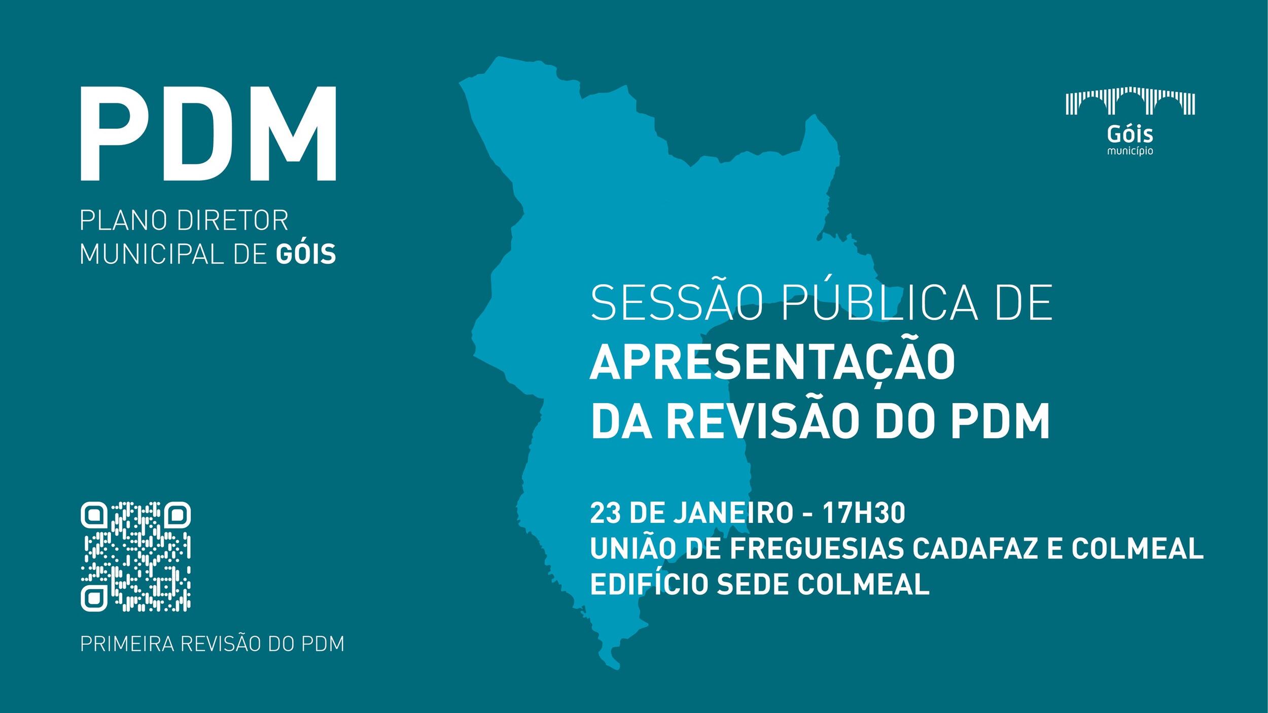O PDM é um plano que estabelece a estratégia de desenvolvimento e as regras para utilização, ocupação e transformação do uso do solo em todo o Concelho. Neste sentido, o Município de Góis convida toda a população a participar na Sessão Pública de Apresentação e Discussão da Revisão do PDM, a decorrer no dia 23 de janeiro (terça-feira), às 17h30, na União de Freguesias de Cadafaz e Colmeal, mais concretamente no edifício sede na aldeia do Colmeal.