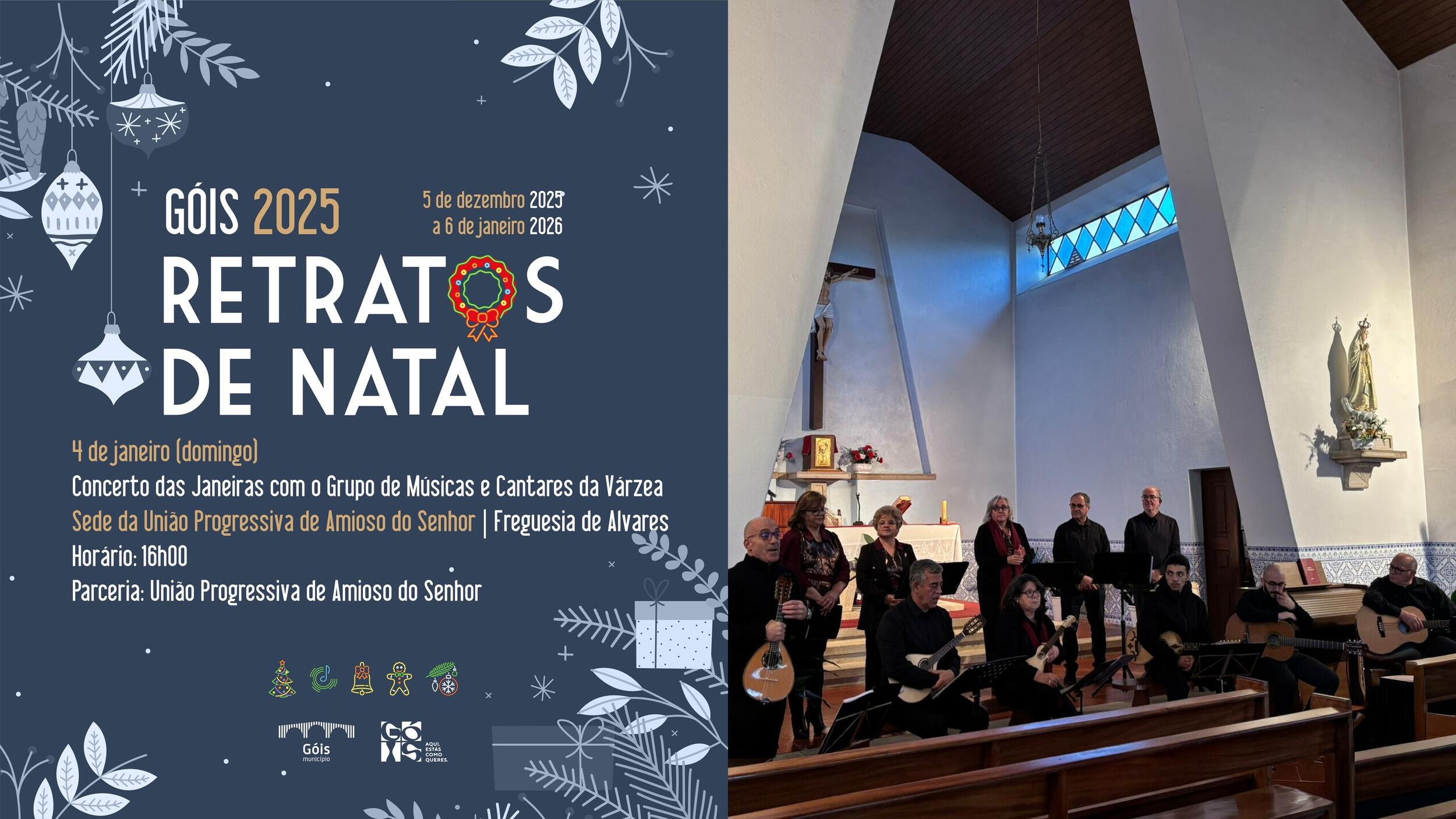 No âmbito da programação "Retratos de Natal 2025", no dia 𝟒 𝐝𝐞 𝐣𝐚𝐧𝐞𝐢𝐫𝐨, pelas 𝟏𝟔𝐡𝟎𝟎, irá realizar-se o Concerto das Janeiras com o Grupo de Música e Cantares da Várzea na Sede da União Progressiva de Amioso do Senhor (Freguesia de Alvares), em parceria com a União Progressiva de Amioso do Senhor.