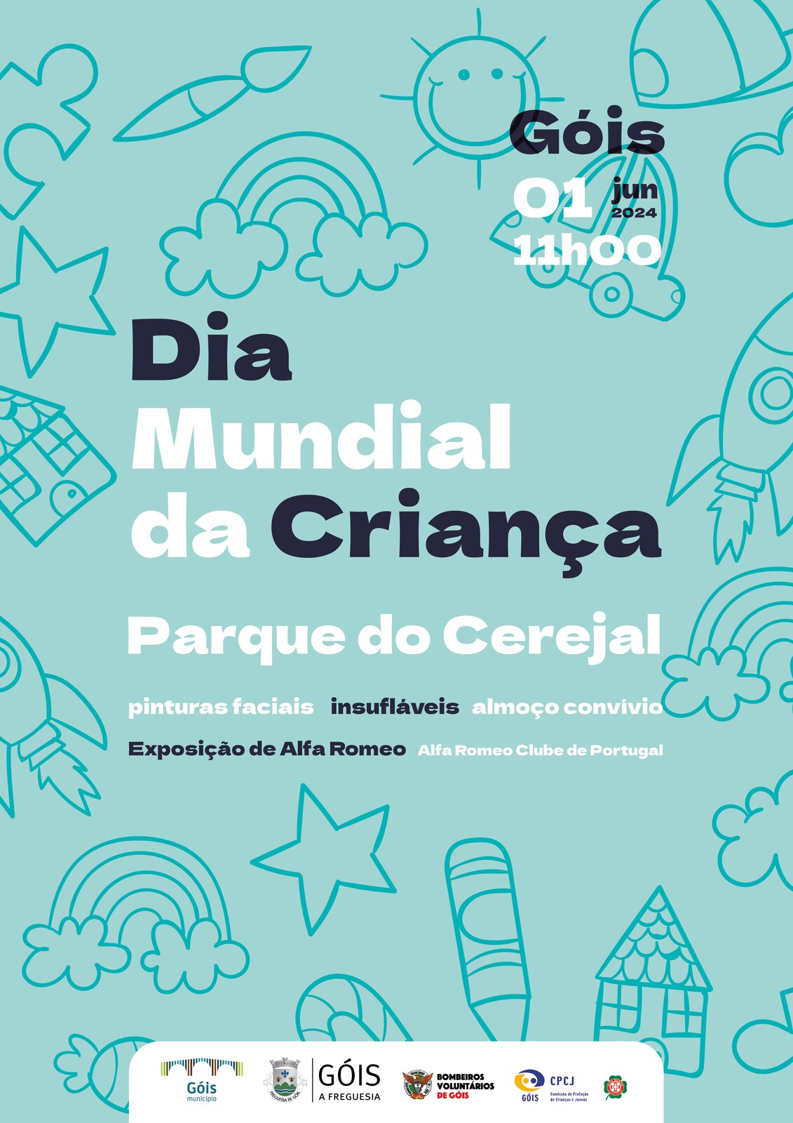 O Município de Góis, em parceria com a Junta de Freguesia de Góis, a CPCJ Góis e a Associação Humanitária dos Bombeiros Voluntários de Góis, volta a comemorar o Dia Mundial da Criança, com um dia recheado de atividades para toda a família.