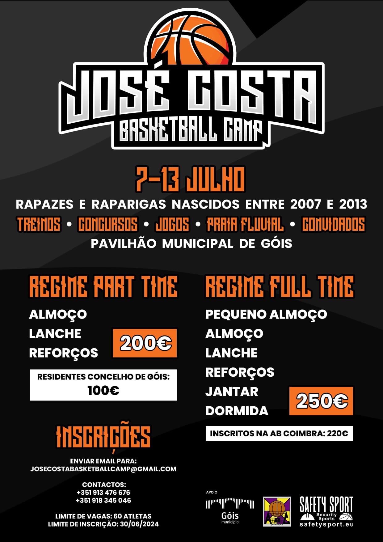 Se gostas de Basketball e nascente entre 2007 e 2013, esta é a oportunidade para te inscreveres, até dia 30 de junho, em https://forms.gle/wcgF1rv93n3sPT489 ou em josecostabasketballcamp@gmail.com. As vagas são limitadas a 60 atletas.