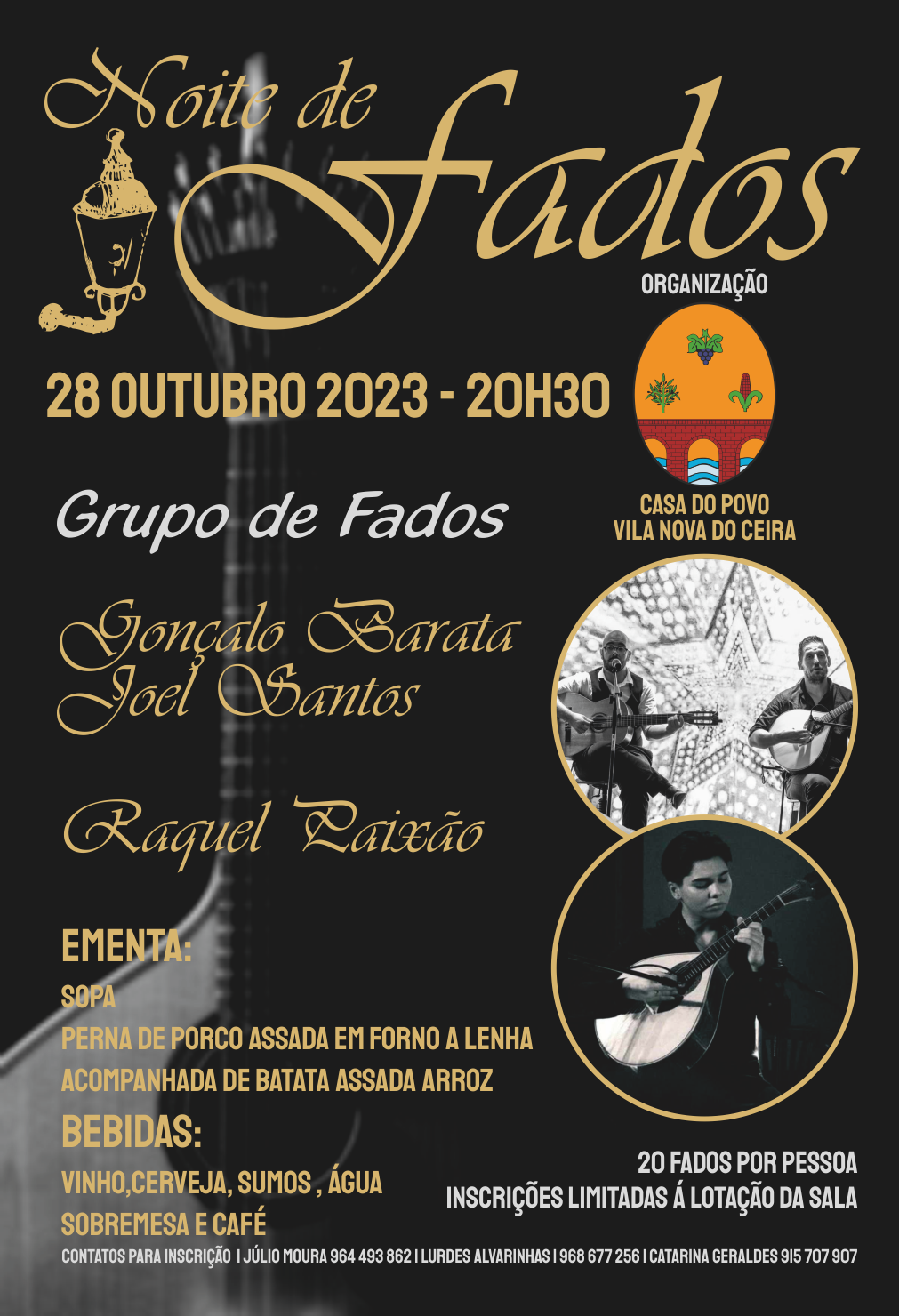 O Município de Góis divulga a iniciativa da Casa do Povo de Vila Nova do Ceira que o convida a passar uma noite diferente, uma “Noite de Fados” com jantar, no dia 28 de outubro, pelas 20h30, na Casa do Povo de Vila Nova do Ceira.