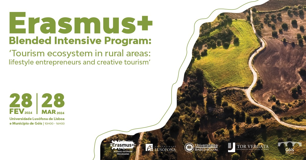 O seminário "Tourism ecosystem in rural areas: lifestyle entrepreneurs and creative tourism", no âmbito do Blended Intensive Program (BIP), vai decorrer em Lisboa e Góis, de 6 a 12 março de 2024, uma iniciativa da Universidade Lusófona.
