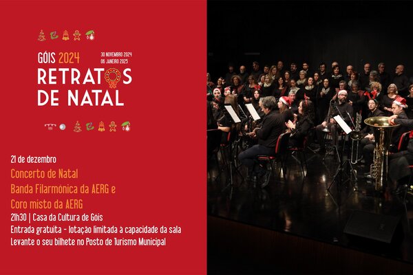 Concerto de Natal com Banda Filarmónica da AERG e Coro Misto da AERG 21h30 | Auditório da Casa da Cultura de Góis Entrada ... -