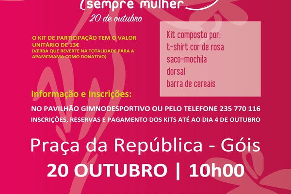 A caminhada “Corrida Sempre Mulher", na Vila de Góis, irá realizar-se no dia 20 de Outubro, pelas 10h00, sendo o ponto de ... -